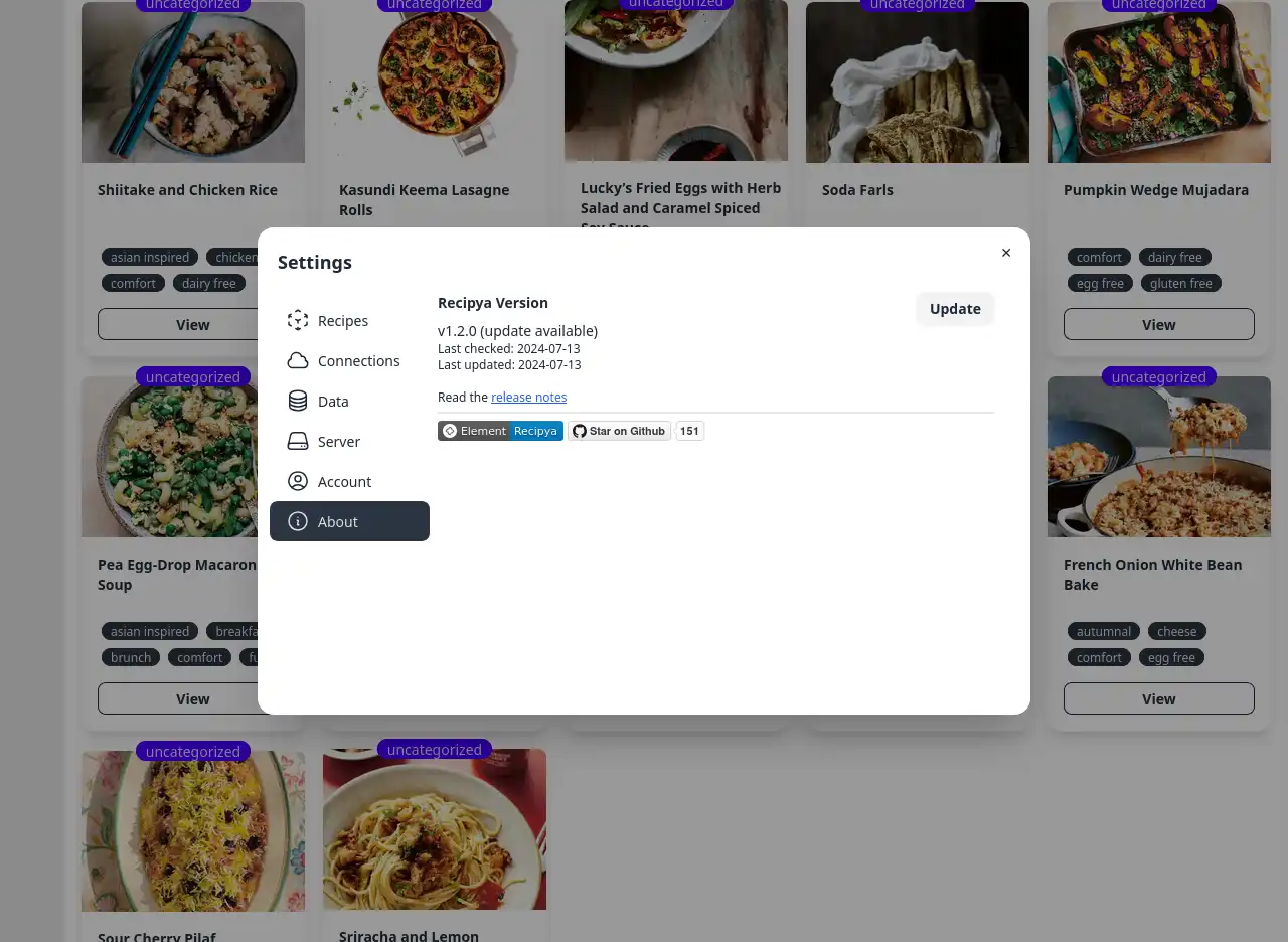 sous /path/to/recipya/Backup/global au cas où quelque chose tourne mal. Le vérificateur de mise à jour est exécuté une fois tous les trois jours.